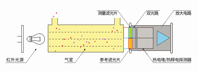 非分光红外(NDIR)技术是利用气体对特定波长红外光的吸收特性来测量气体浓度,检测不同型号冷媒气体只需选择对应的特征吸收波段,具有选择性好,抗干扰能力强,检测精度高,寿命长,可靠性高等优势,但NDIR冷媒泄漏监测传感器因其相对复杂的设计使其尺寸在应用中存在局限性。
