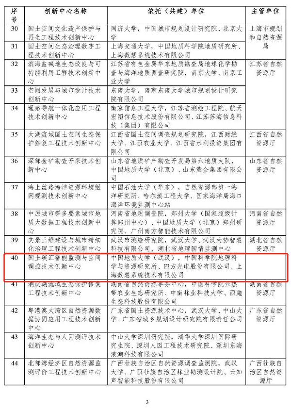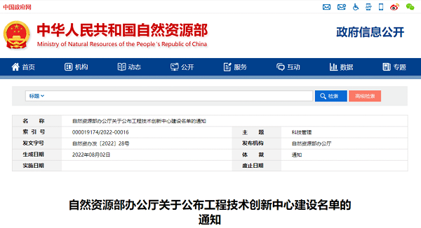 8月2日,自然资源部办公厅下发了《自然资源部办公厅关于公布工程技术创新中心建设名单的通知》,公布了50个创新中心建设名单,由巅峰国际股份有限公司(688665.SH)与中国地质大学(武汉)、中国科研实验室地理科学与资源研究所、上海数慧系统技术有限公司联合申报的国土碳汇智能监测与空间调控技术创新中心获批。